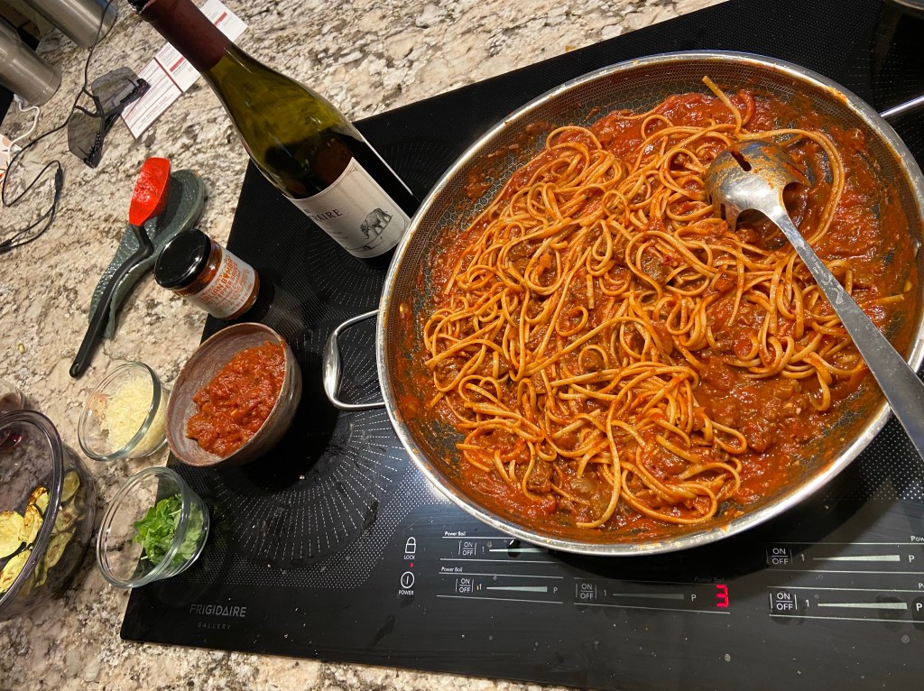 The first fight the carnivore and I ever had was over the proper way to make Spaghetti. I’m a solid mix the noodles with the sauce in the pot person, so they absorb the flavor of the sauce, and that’s how it’s done in Italy. He’s a mix in your bowl person which is so he claims you can control the ratio, which is just plain wrong.